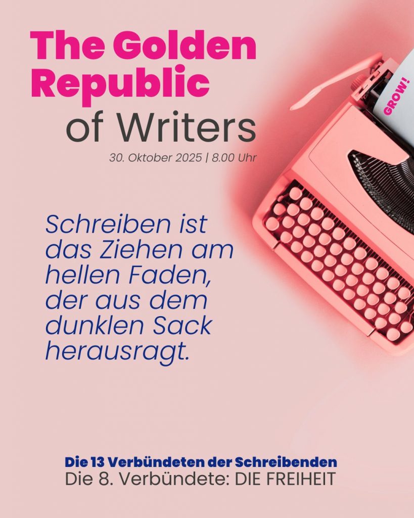 Ich lade dich ein, an der neuen KOSTENLOSEN Masterclass innerhalb der Schreibcommunity “The Golden Republic of Writers – GROW” teilzunehmen mit dem Thema: